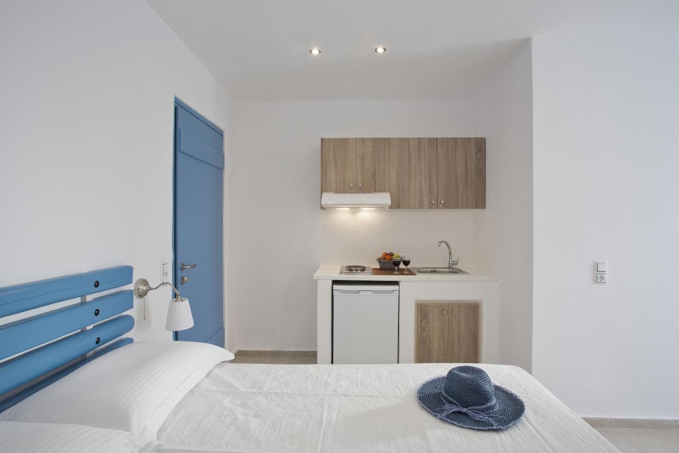 Studio (2 Adults). Opening to a balcony, this air-conditioned studio offers free Wi-Fi and includes: -a TV -a kitchenette with cooking rings and fridge -a bathroom with a bath or shower. Some enjoy Aegean Sea views. ;