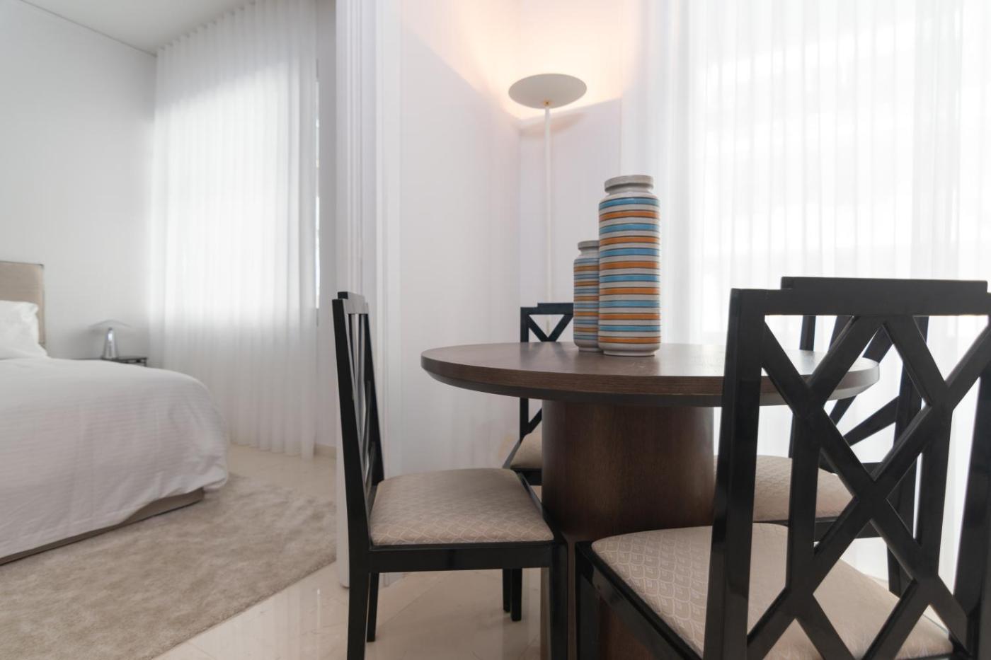 Two-Bedroom Apartment. This spacious apartment comes with 1 living room, 2 separate bedrooms and 2 bathrooms with a walk-in shower and a hairdryer. Meals can be prepared in the well-fitted kitchen, which features a stovetop, a refrigerator, kitchenware and an oven. This air-conditioned apartment is comprised of a dining area, a flat-screen TV with streaming services a tea and coffee maker and a terrace. The unit has 3 beds.