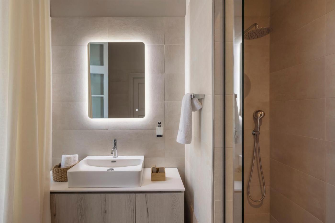 Deluxe Double Room. Providing free toiletries, this double room includes a private bathroom with a shower and a hairdryer. The spacious air-conditioned double room provides a flat-screen TV with streaming services, soundproof walls, a tea and coffee maker, a seating area as well as a quiet street view. The unit offers 2 beds.