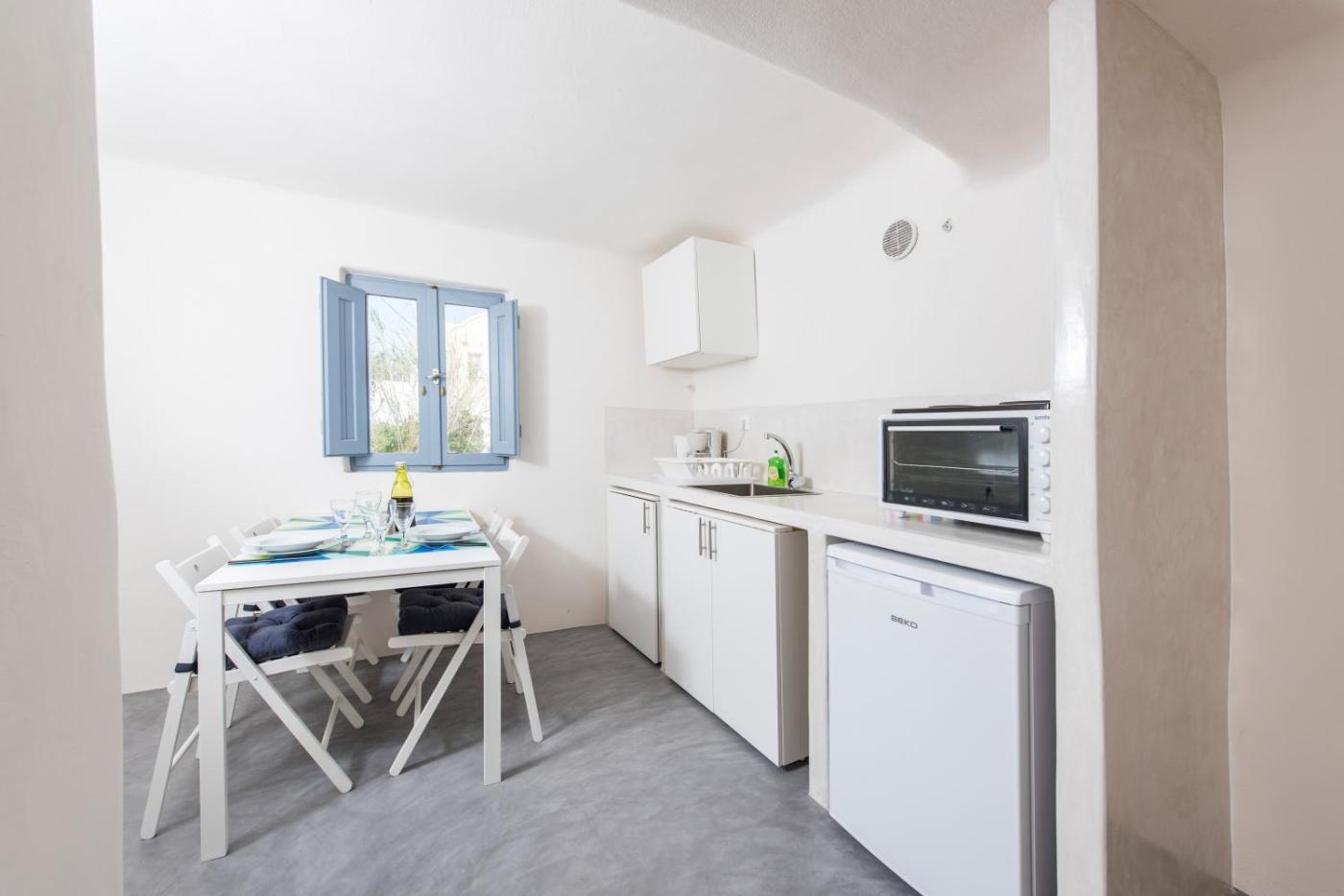 Fava is located in a tranquil area, just a stones throw from the picturesque Oia.white washed suites at Fava Eco Residences offer views over the village, the famous sunset of the island and the Aegean Sea with the closeby Ios, Sikinos and Folegandros islands on the horizon. The residences have private, fully functional kitchens and bathrooms with built-in showers and hairdryer. Autonomous outdoor terraces with table and chairs for relaxing are also provided in every suite.